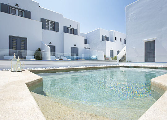 <p>Mehr als 70 Strände, eine abwechslungsreiche Küste und weitläufige Sandbuchten erwarten den Besucher. Die Insel zählt rund 5.000 Einwohner, die hauptsächlich in der Inselhauptstadt Plaka leben. Hier findet man die typische Kykladenarchitektur mit weiß gekalkten Häusern und Gassen mit blühenden Höfen und Fenstern.</p>
